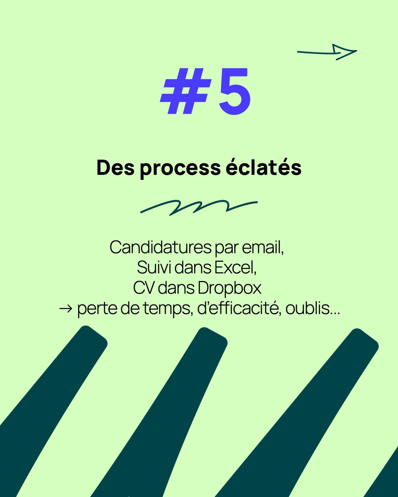 Candidatures par mail, suivi dans Excel, CV dans Dropbox → perte de temps et d’efficacité.